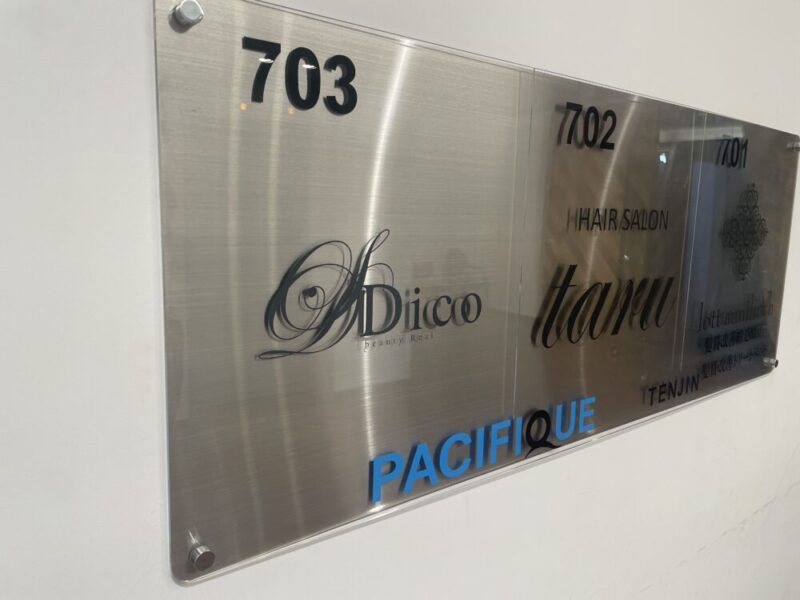美容室様で2店舗で同じ内容のカッティングシートを貼りたいとのことで、先に大名の店舗から施工に伺いました。