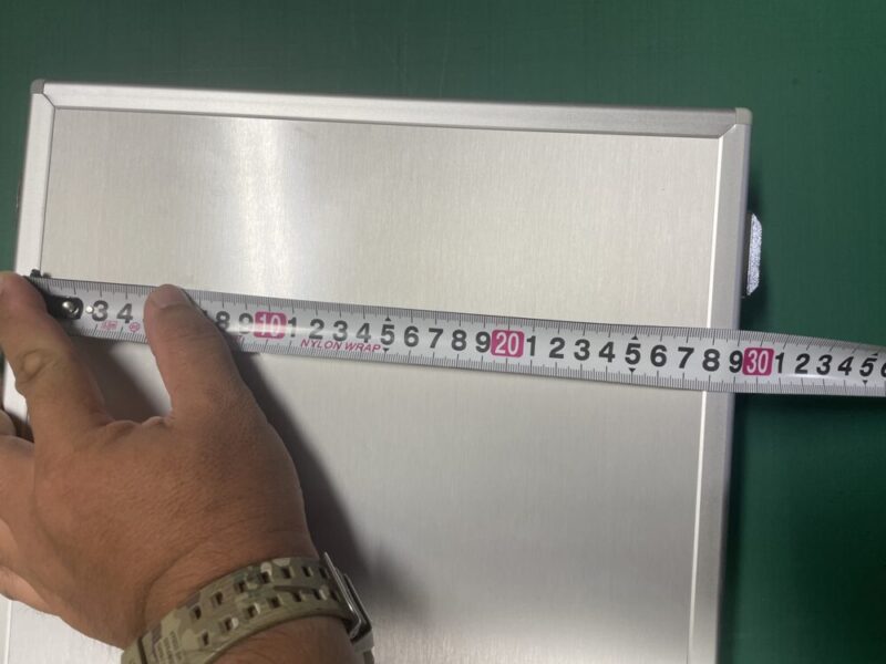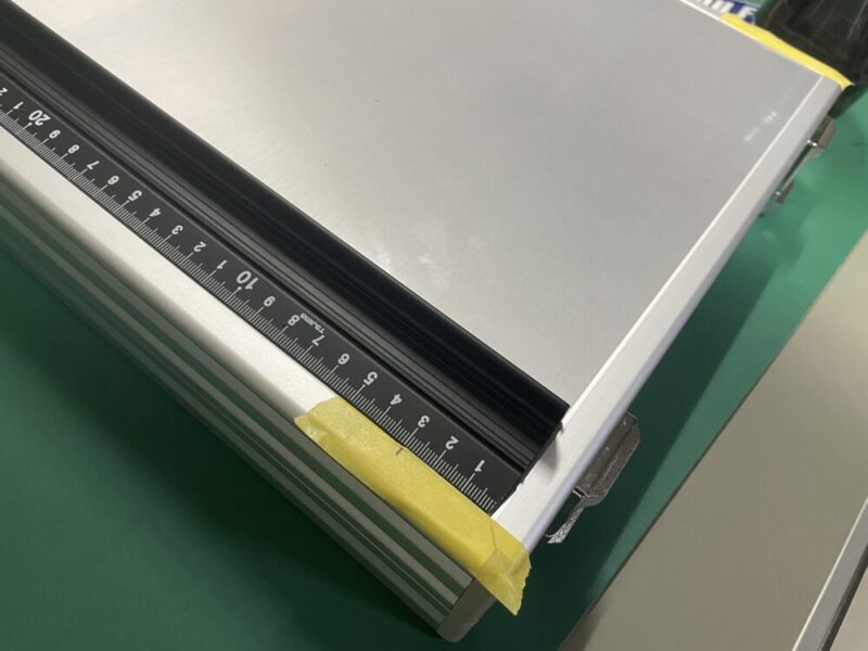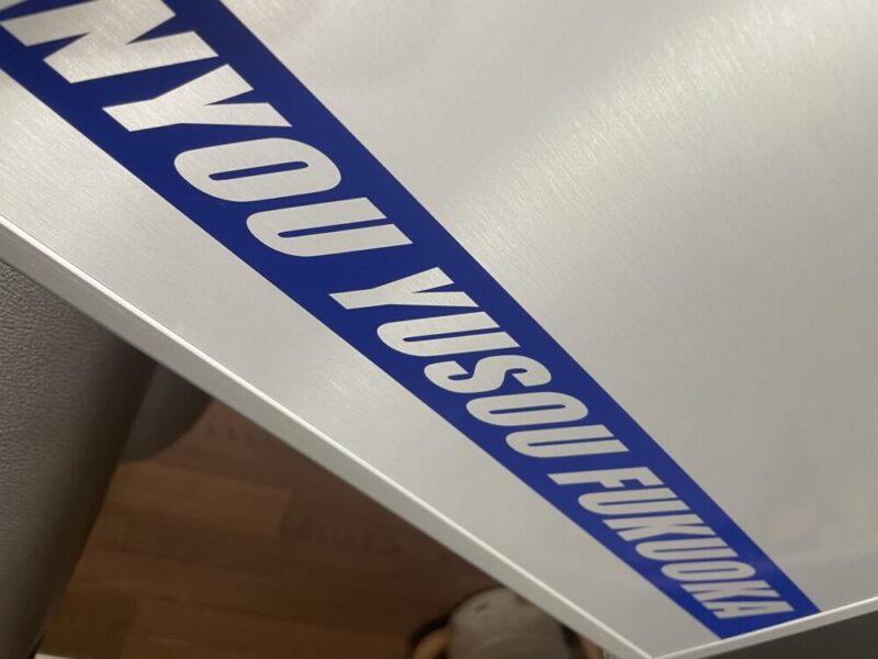 アタッシュケースというと、一般的には波をうったデザインのものが多いですが、フラットなデザインのものを探して購入したとのことで、カッティングシートの抜き文字で、抜き文字の部分でアタッシュケースのメタル調をいかしたい!という拘りにもお応えできました!