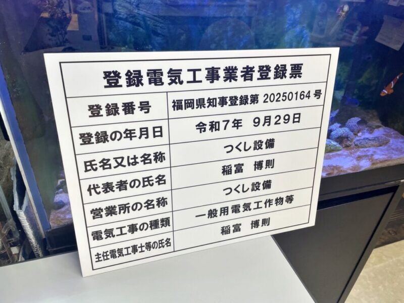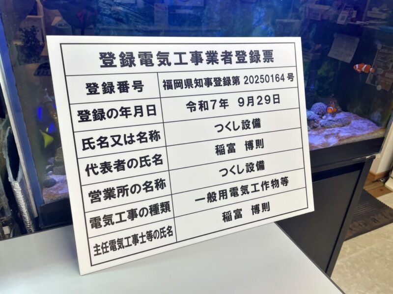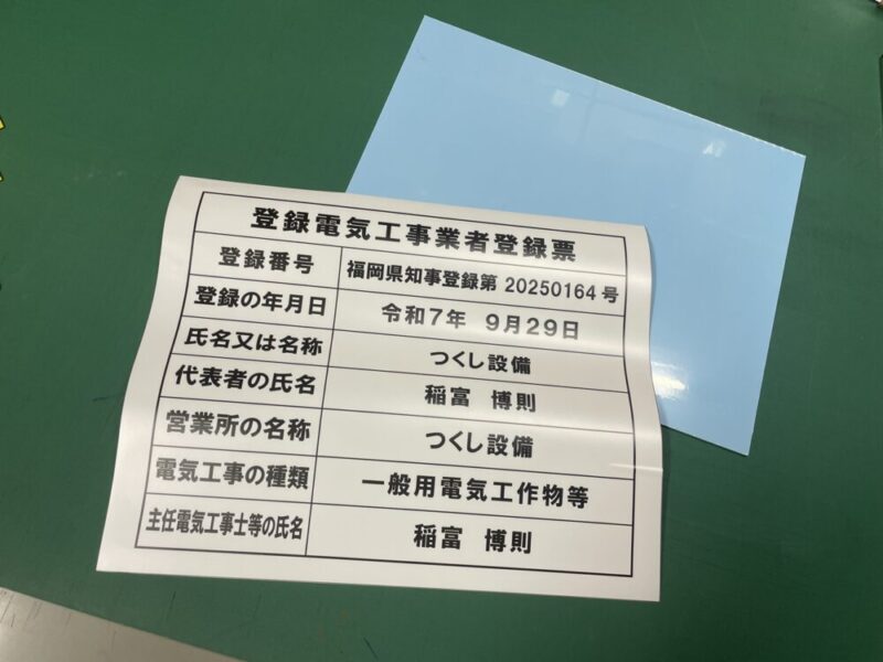 つくし設備様 電気工事者登録票 プレート看板制作事例