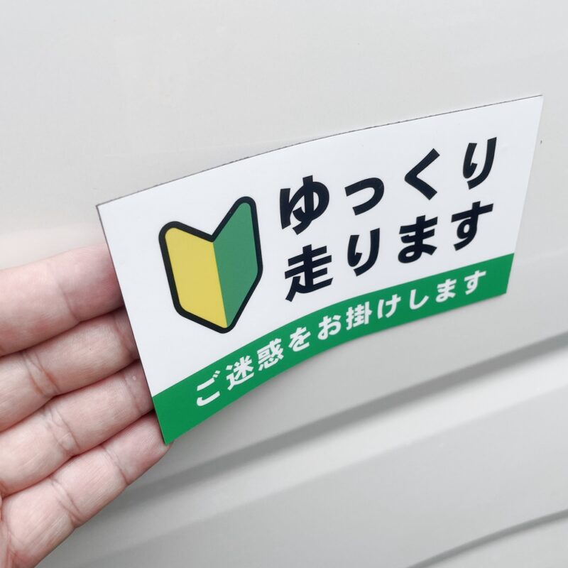 運転に自信のない方、免許は持ってはいるものの普段まったく運転しないというペーパードライバーの方向けの、運転初心者ですよというアピールをする為のマグネットシートになります。